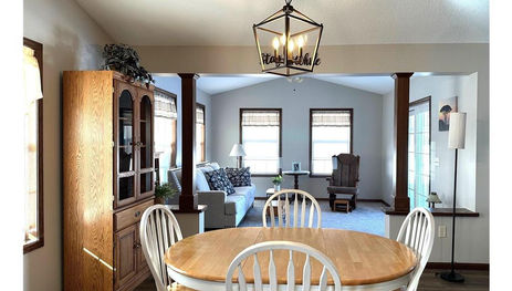 Discover the perfect blend of comfort and convenience in this well-maintained twin home, nestled in a charming community with no HOA fees. Designed for easy living, this one-level home offers an open-concept layout with vaulted ceilings, creating a bright and airy space. The spacious living and dining areas flow seamlessly into a well-equipped kitchen, featuring ample cabinetry, an island, and a peninsula—perfect for entertaining. A pantry with pull-out shelves adds extra convenience.